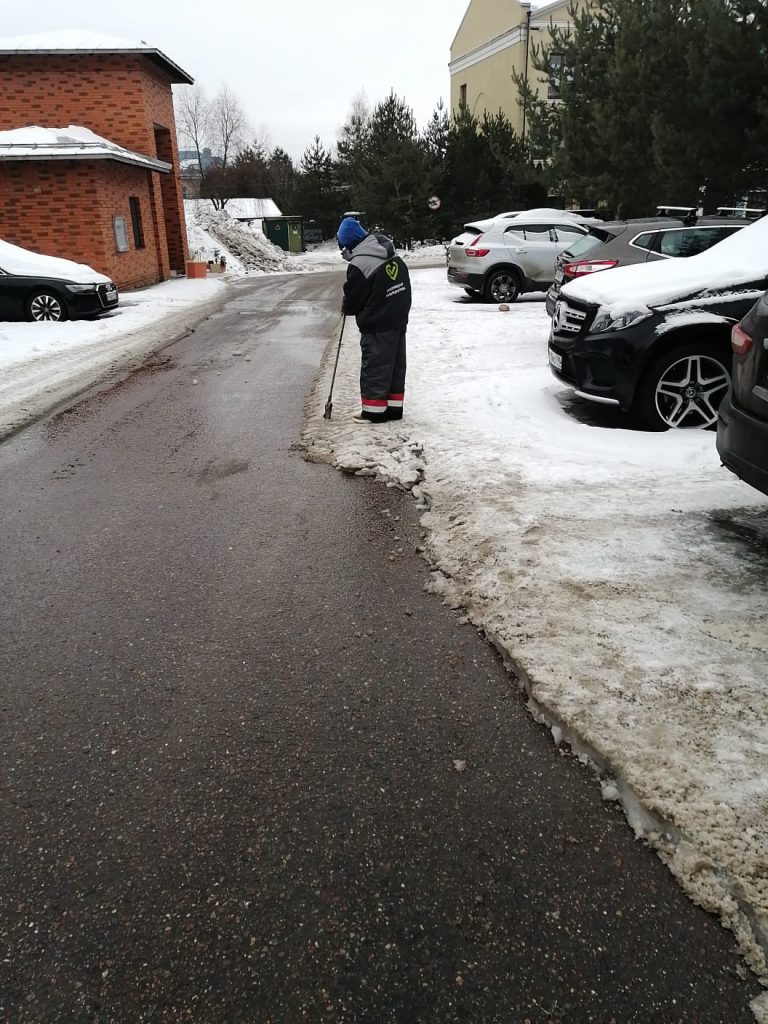 Утро в ЖК «НОВОСХОДНЕНСКИЙ» начинается с обхода территории и наведении порядка.
